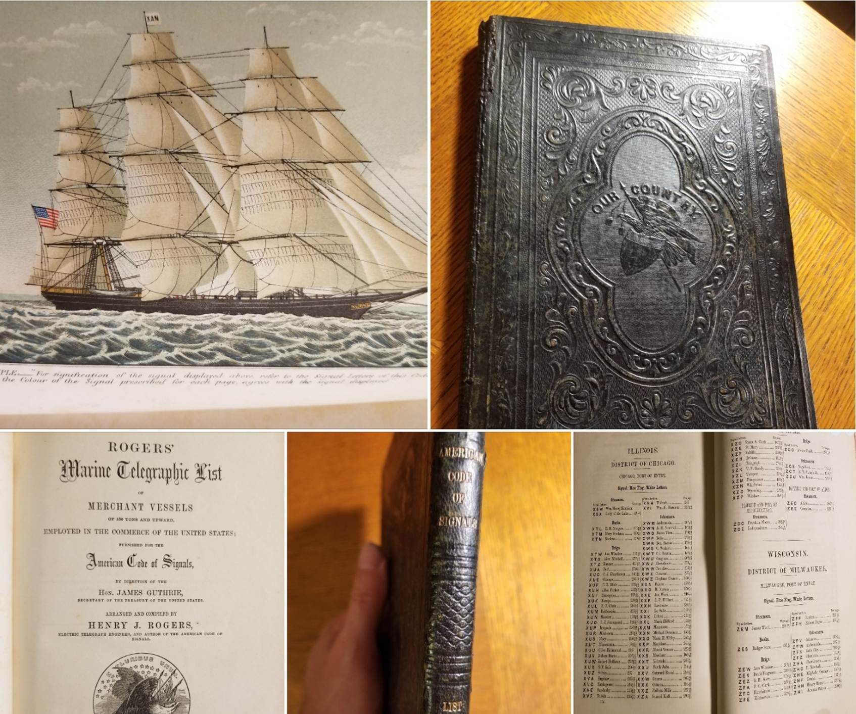 The Great Lakes maritime antiquity for this week is an authentic 1855 leather bound copy of Rogers' Marine Telegraphic List of Merchant Vessels of 150 Tons and Upward, Employed in the Commerce of the United States. This book is noteworthy for being the predecessor to the Annual List of US Merchant Vessels, which the US government wouldn’t begin publishing for another twelve years.